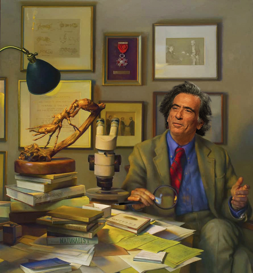Para ilustrar el Jornal de ejem ayer hemos plagiado un retrato del entomólogo Edward O. Wilson obra de Nelson Shanks (es obvio que Wilson estaba escribiendo con la mano izquierda y ha dejado caer el lápiz hace un instante). En …